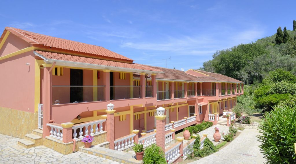 These family-friendly holiday apartments are situated just 100m from the enchanting beach of Aghios Georgios in the south of Corfu. The apartments are simply decorated and equipped with kitchenettes and furnished balconies where