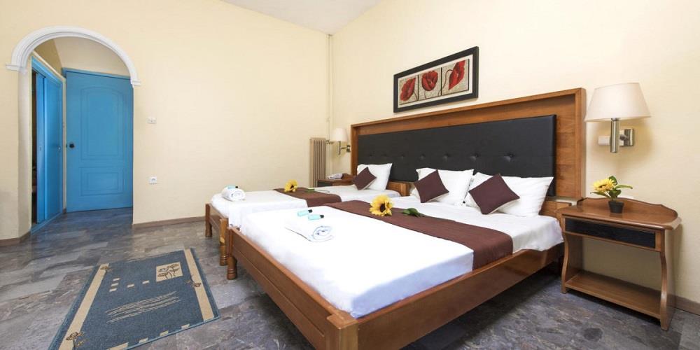 Thesea view triple rooms in Corfu are located at the front side of the Potamaki Beach hotel, facing directly the sea and are just few steps from the beach of Benitses. Each Triple Sea view room can accommodate minimum 3 adults or maximum 3 adults or 2 adults + 1 child + infant.
