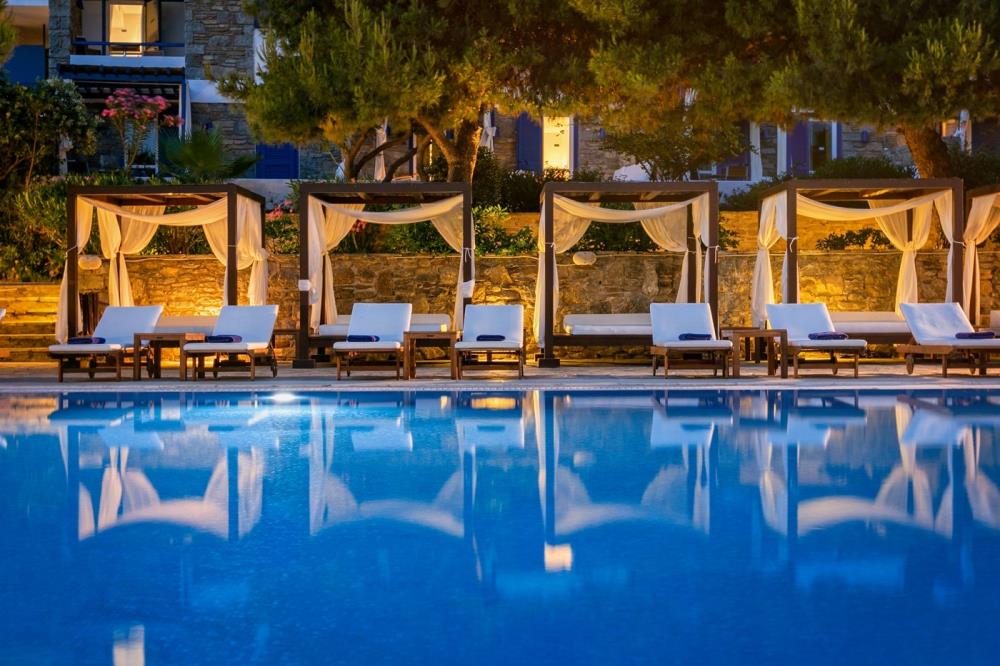 Open a serious conversation or an equally serious bottle of champagne at the most glamorous hotel on the Greek island of Mykonos. Impress the partner by making a sophisticated choice of the ideal kind of caviar to accompany champagne, withdraw discreetly at the internet corner, go through the pages of Greek and international press or enjoy a fine cigar.