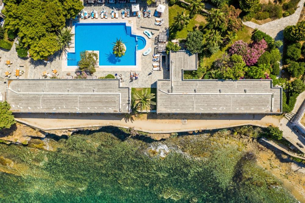 Deluxe room has a lounge area for added spaciousness and comfort, an elevated bedroom with wooden floor, balcony and bathroom. Deluxe sea front room also offers a separate shower with hydromassage. Special designed rooms for Honeymooners are also available. The room is equipped with a mini bar, safe deposit box, air conditioning, hair dryer, pay T.V, light dimmer, direct dial phone with voicemail, internet access and a mini Hi-Fi stereo system with i-pod/i-phone/i-pad docks. Upon arrival, all guests will receive a welcome drink, fresh fruit, a bottle of wine and flowers as well as slippers and pool towels. Guests of Deluxe Sea Front Rooms will additionally receive international newspapers, enriched deluxe body and hair care items as well as cosmetics and a souvenir gift upon departure.