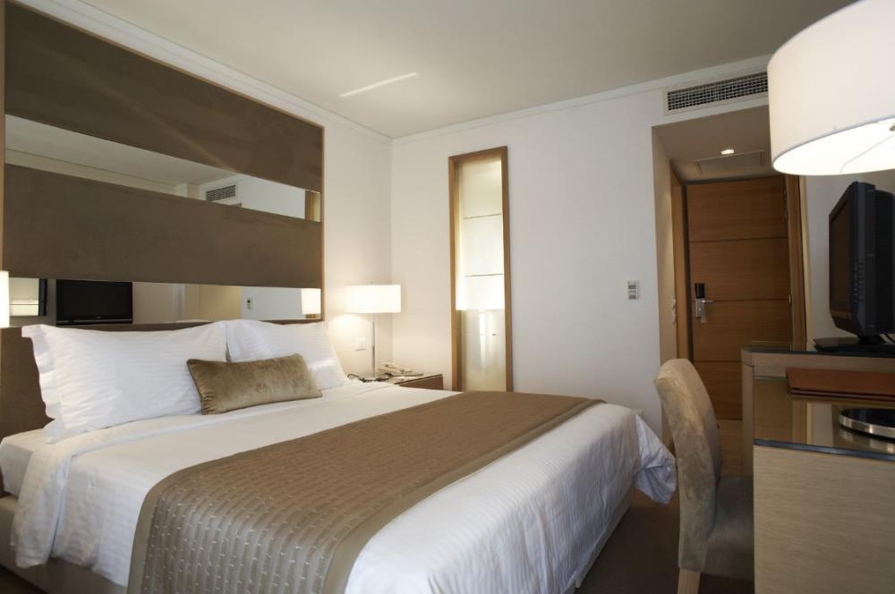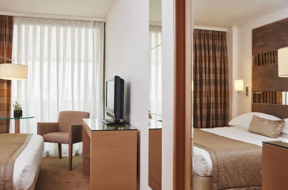 The award-winning hotel has 127 spacious and contemporary rooms, ranging from superior to executive and suite, each with lavish en suite bathroom and amenities, free Wi-Fi, air-conditioning, anti-allergenic materials, and double-glazed windows for a peaceful and comfortable stay.