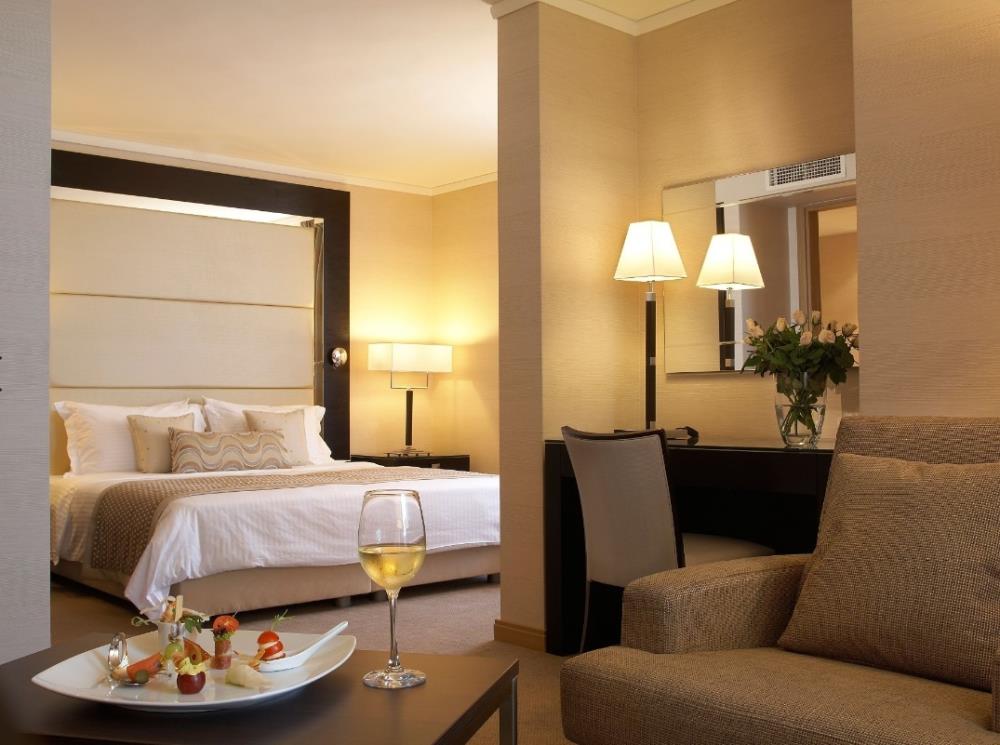 If you have high expectations of your stay in Heraklion, the exquisite Executive Suites will definitely satisfy you. The particular layout of the Executive Suites enhances guest experience: two separate living spaces featuring a sitting area and a bedroom area will allow you to decompress in a way that only the elegant suites can. Exclusively decorated with fine Italian furniture throughout and closet space that you can... walk into, these rooms feature a luxurious bathroom with a power Jacuzzi. With urban views through the double-glazed windows, incredibly comfortable Simmons mattresses that will effortlessly lull you to sleep and a Nespresso machine, the Executive Suites will most definitely impress even the most cosmopolitan of travelers.