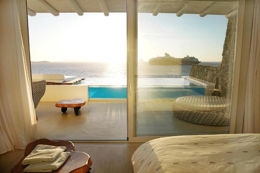 Within proximity of Chora in Mykonos, the awarded hotel Cavo Tagoo features luxury amenities and comfort.
