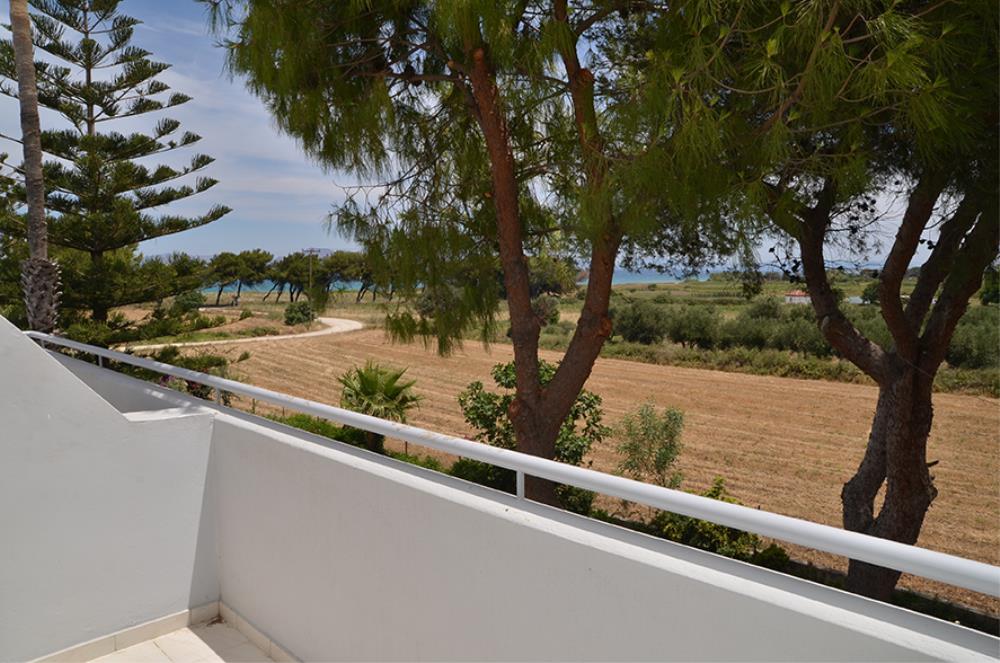 This room opens to a balcony with views of the garden and side views of the Aegean Sea.