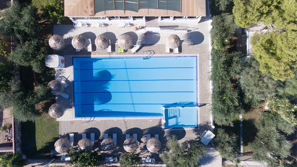 Surrounded by lush greenery, the Blue Nest Hotel offers an outdoor pool and a restaurant. It features accommodation with WiFi throughout and balcony overlooking the garden or the Aegean Sea.