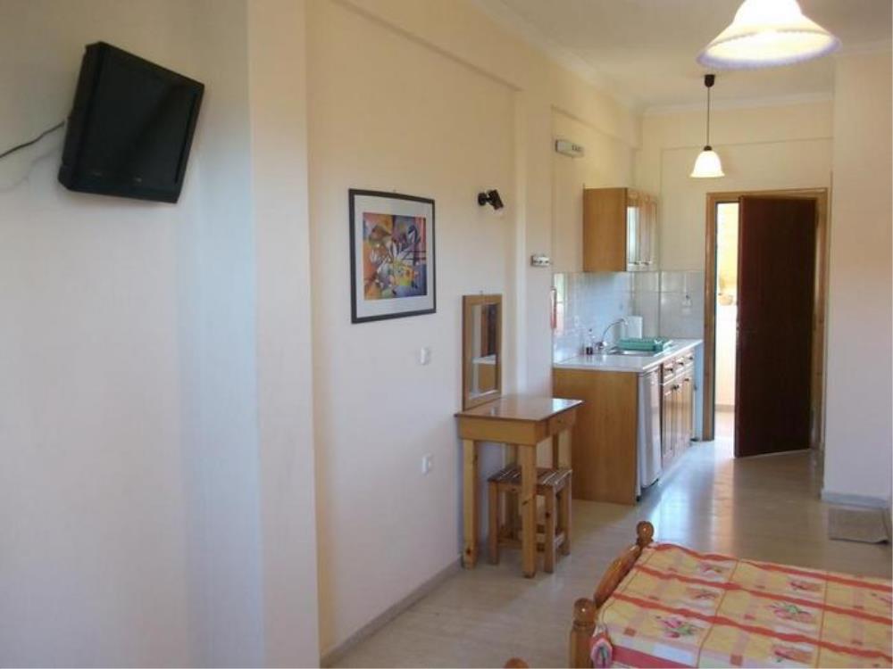 All studios and apartments have kitchenette with fridge, two cooking rings, iron and ironing board, air conditioning (upon extra charge), television, hair dryer and a private and fully furnished balcony or terrace.