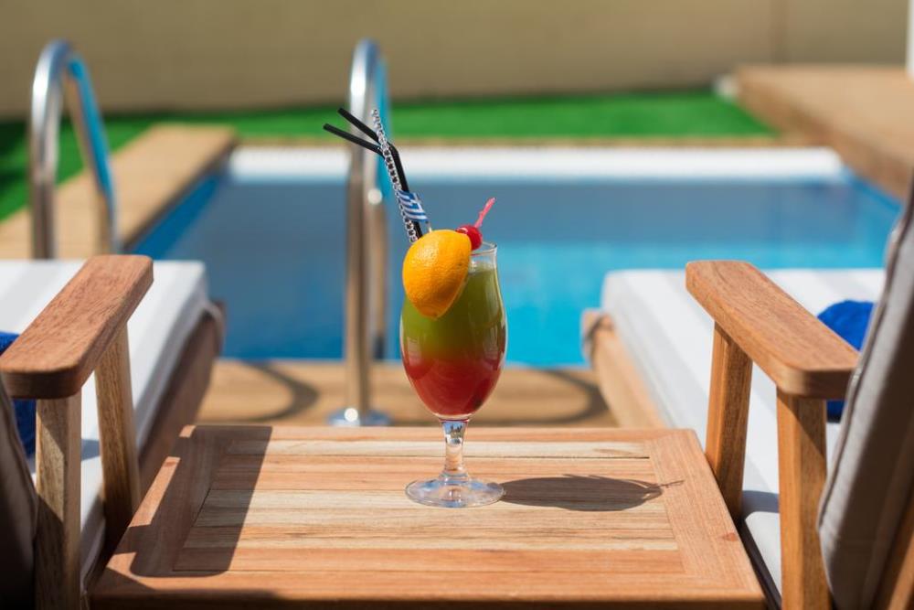 Guests can enjoy delicious Greek and International cuisine at the hotel's restaurant or a drink at the lively pool bar.