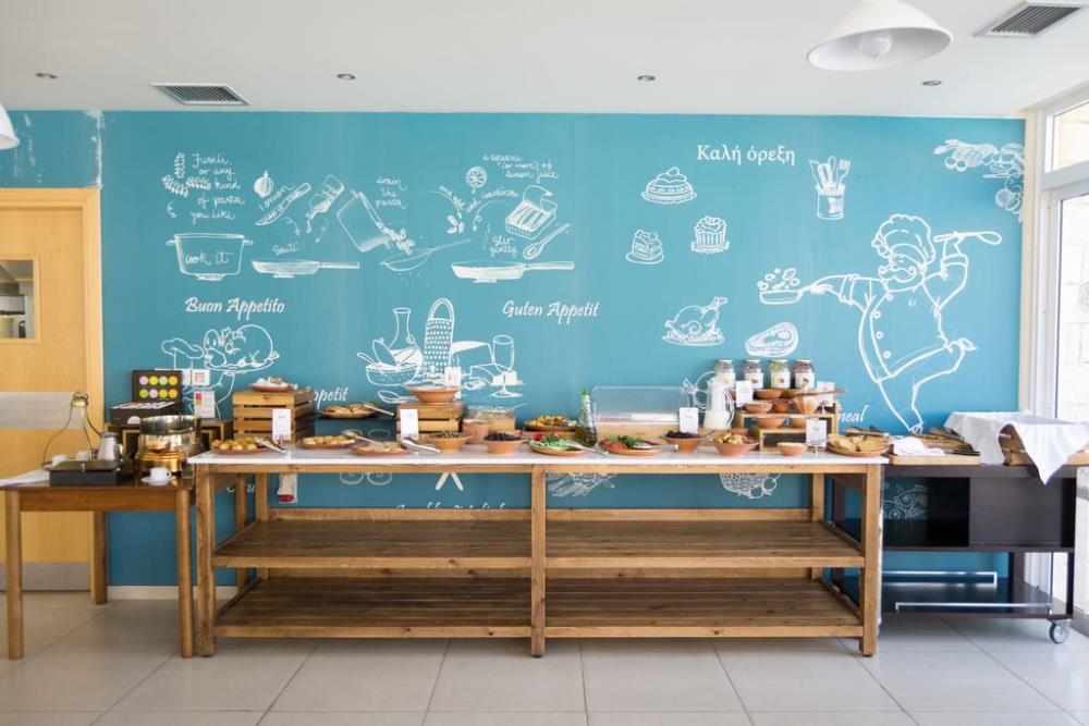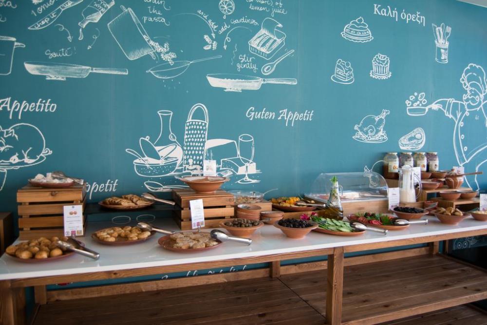 Featuring Greek and Mediterranean Cuisine in buffet style, the main restaurant with an updated wine list that appeals to the most demanding guests is open every day.