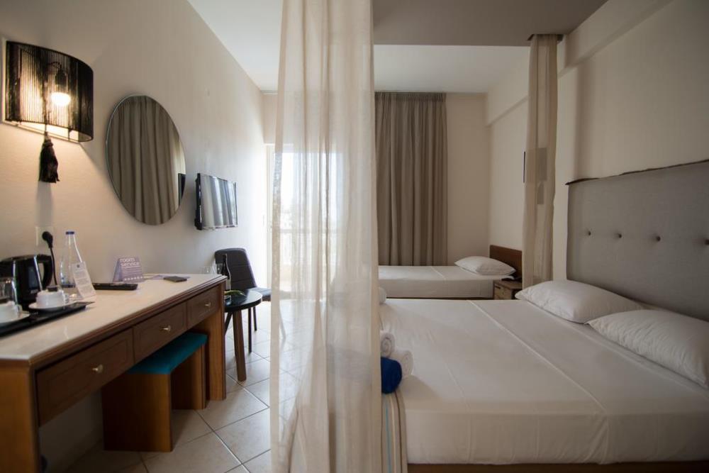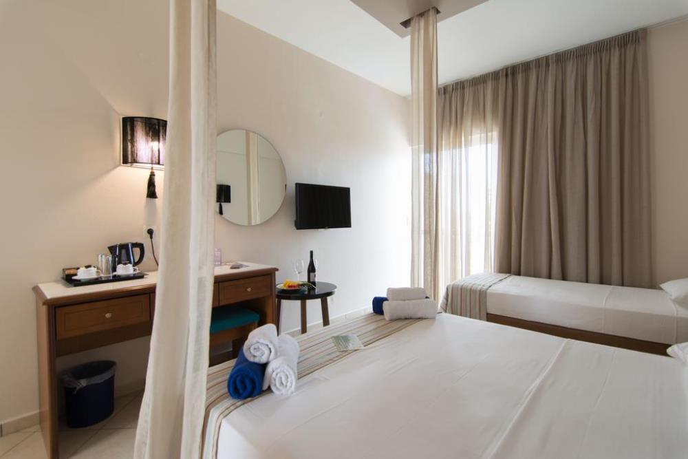 With elegant country aesthetic, versatile services & high-skilled personnel Lavris Paradise Hotel in Gouves balances comfort and quality with respect to natural materials and environment .Located in a tranquil bungalow-style setting, the Guest Rooms with refreshing, recently renovated interiors and hi-tec amenities provide the perfect holiday retreat.