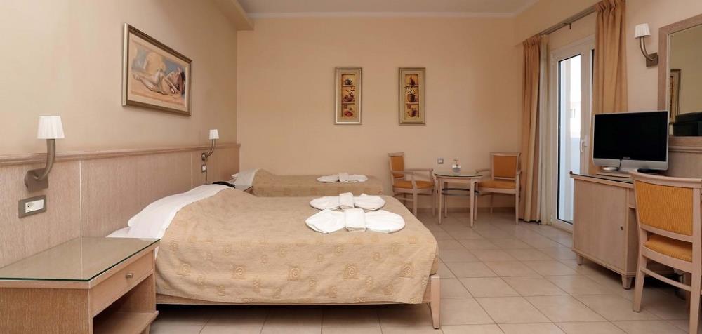 All rooms are equipped with comfortable furniture, satellite HD flat TV , music channels, direct-dial telephone, individual air-conditioning, hair dryer, refrigerator, safety deposit box (extra charge) and complimentary tea/coffee facilities, supplemented every day. Each room has a balcony or terrace and bathroom with bath or shower (soap, shampoo/ shower gel included). Cleaning service daily, change of linen and towels 3 times per week. Extra towel change and baby cot on top of the capacity, on request. Free Wi-Fi in all the rooms.