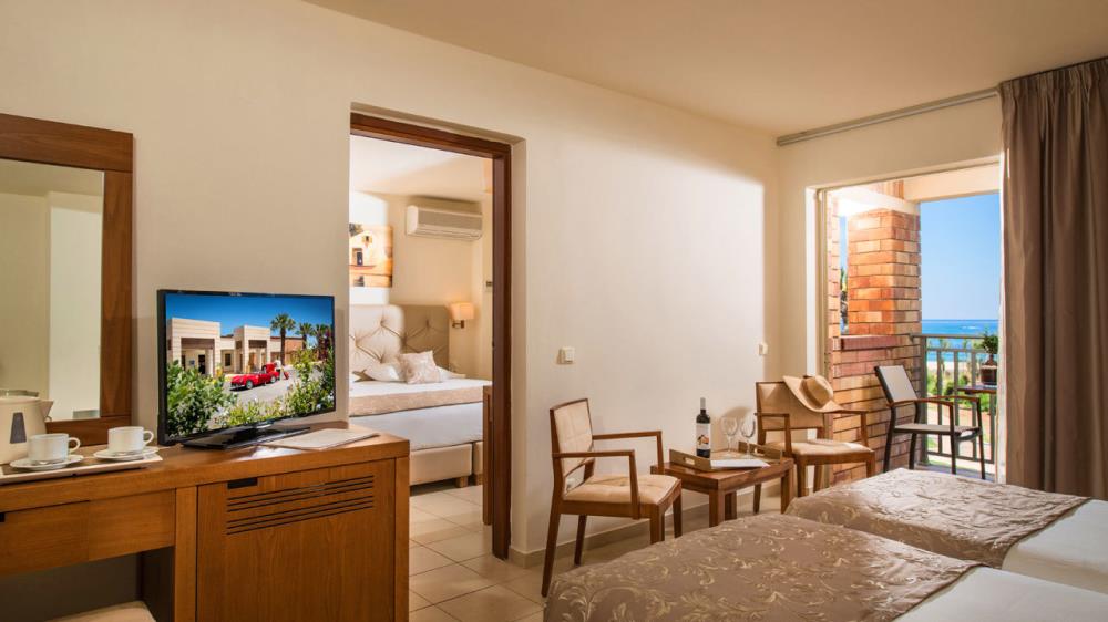 Renovated rooms, consisting of two bedrooms with twin & double beds, a bathroom with a bath, accommodating up to 4 adults or 2 adults and 3 children. Each family room also includes a private furnished terrace or veranda. Some family rooms have two separate bathrooms.
