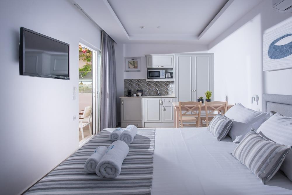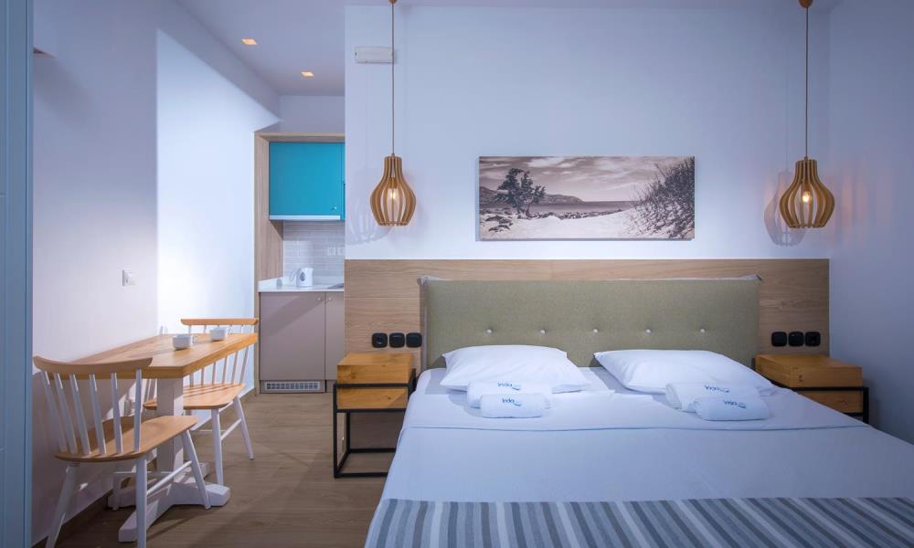Irida is comprised of Irida Hotel Apartments (39 units) and Irida Gardens (4 units), each property with its own unique personality and materials of high-quality and aesthetics. The widest choice of rooms ever is now offered, from a range of beautifully appointed studios, apartments and maisonettes. Choose the accommodation type that best suits your own demands and preferences and set out on a unique holiday experience.