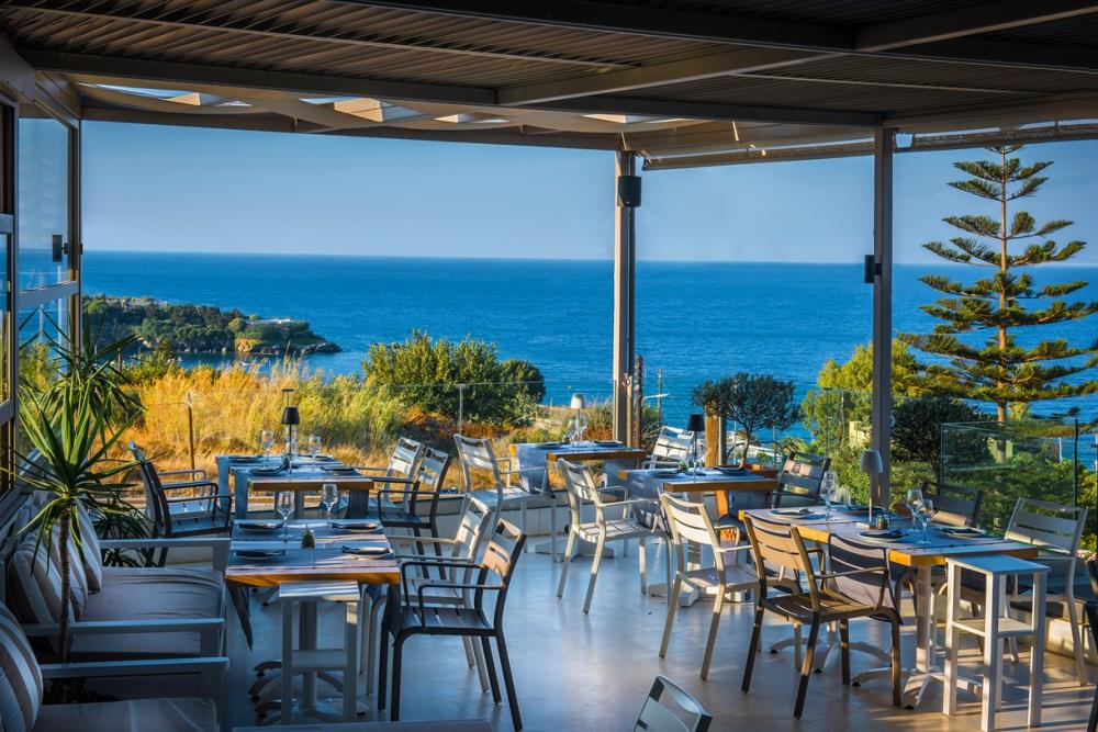 With views over the beautiful bay, the atmosphere here could only be chilled. A great place to catch a fabulous sunset or to relax after dinner with an after-dinner espresso or one of the signature cocktails. Enjoy your wine from the list which features a unique selection of premium wines, selected from renowned Cretan wineries, sit back and soak up the atmosphere!