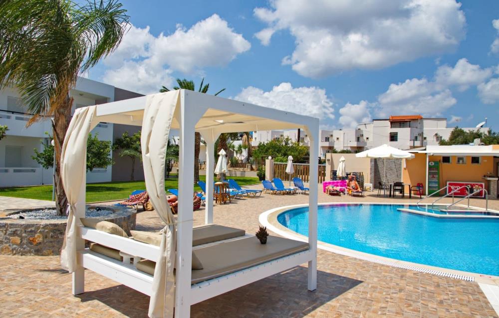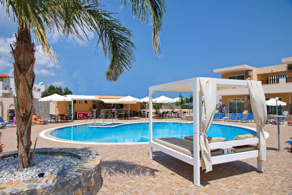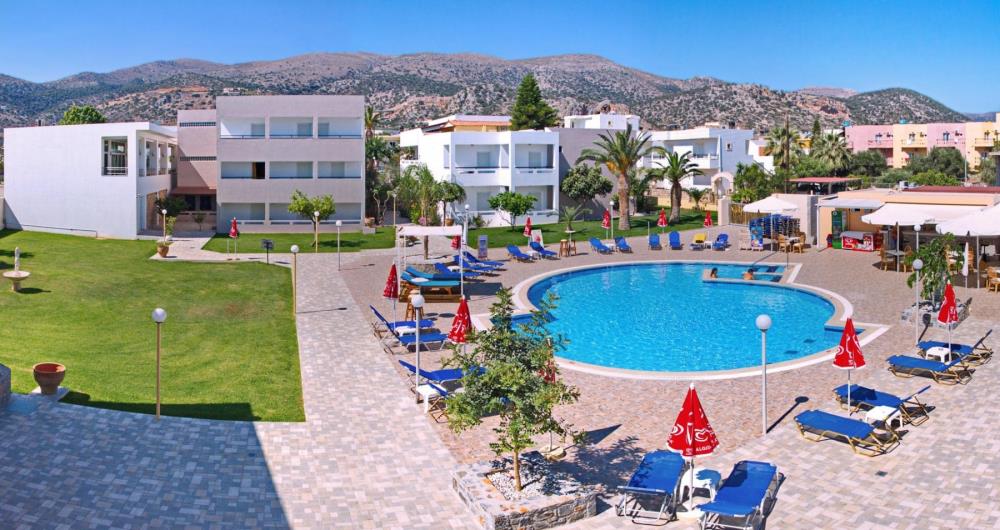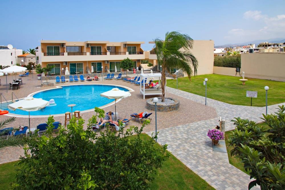 Maria Rousse is in an ideal location, just off Malia beach road in a quiet area but close enough to enjoy the resorts nightlife. These self catering studios are bright and spacious, and have a large pool and sun terrace, with a pool bar and TV lounge with views of the mountains. However, the lively resort of Malia with its fantastic selection of bars, shops, tavernas and clubs is within a short walking distance. The sandy beach of Malia is just 900 metres away.