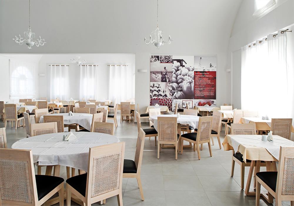 На завтрак или ужин элегантная обстановка создает спокойную атмосферу в сочетании с лучшим и тщательно отобранным сырьем в разнообразных блюдах, вдохновленных санторинской, греческой и интернациональной кухней.